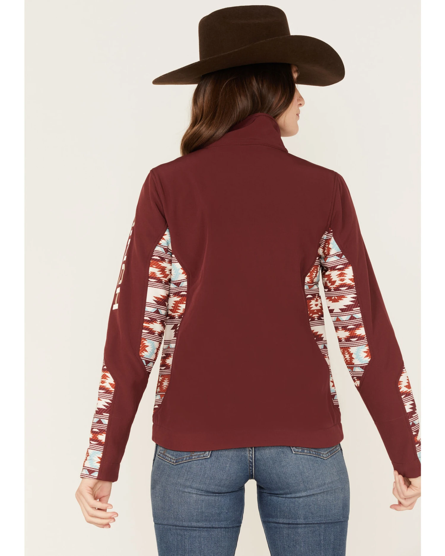 - Burgundy with Southwestern print panels