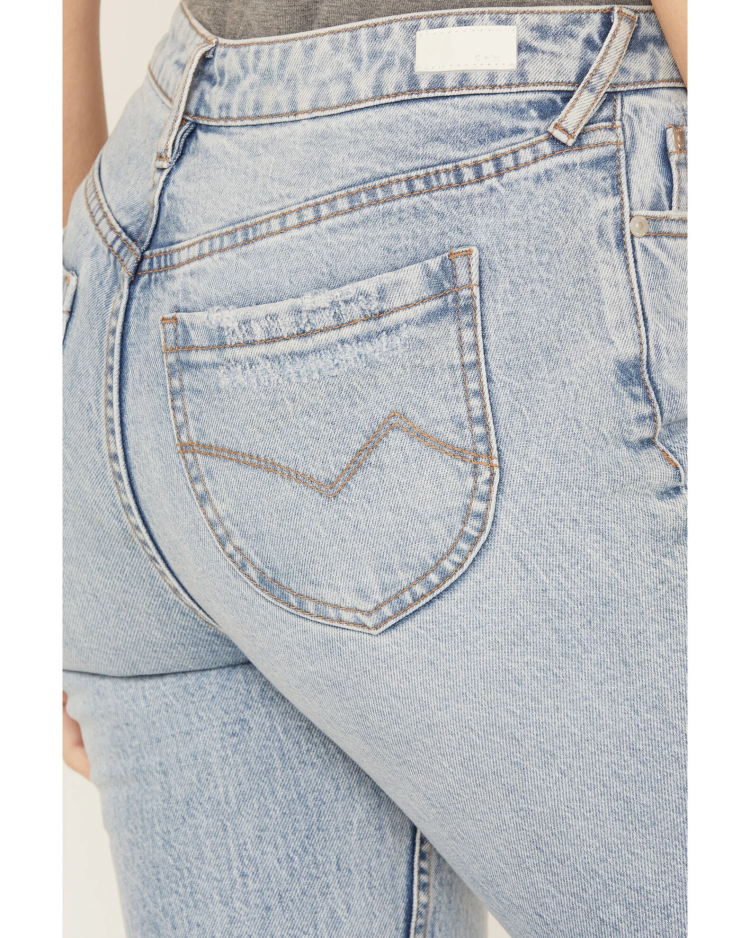 - Bootcut leg with raw hems