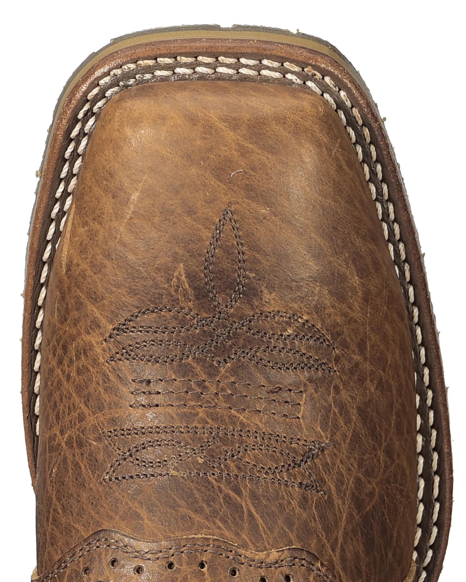 - Full-grain leather with buckaroo pull holes and deep V collar