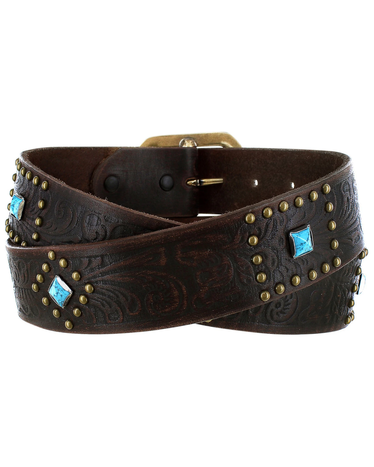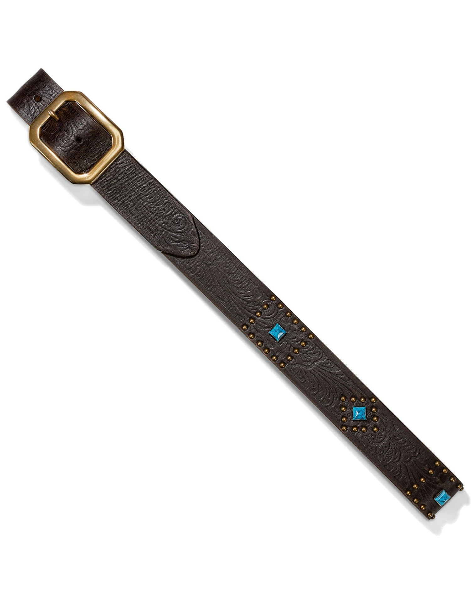 - Brass toned buckle