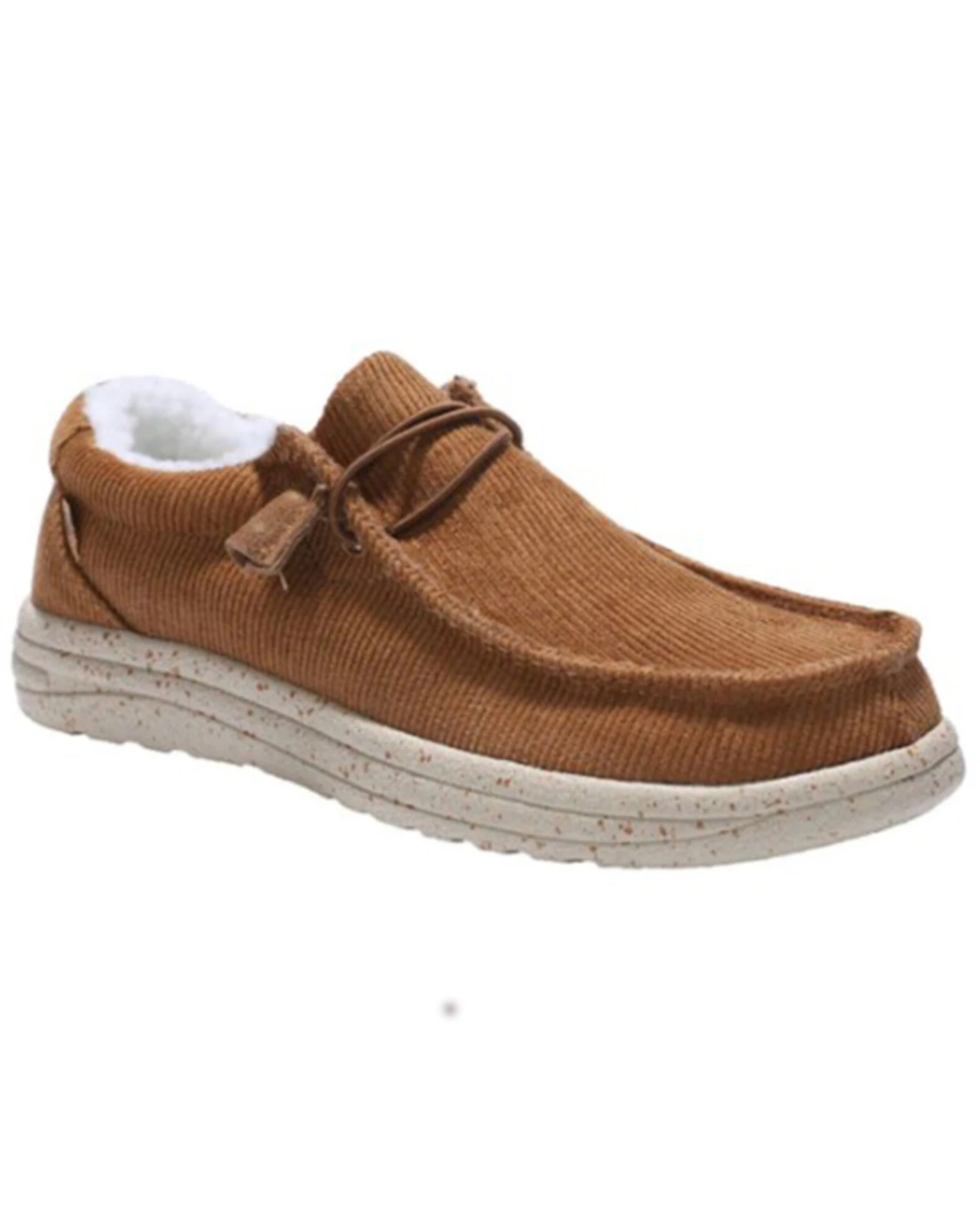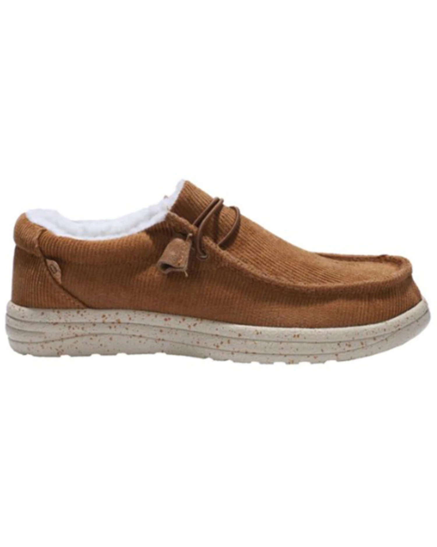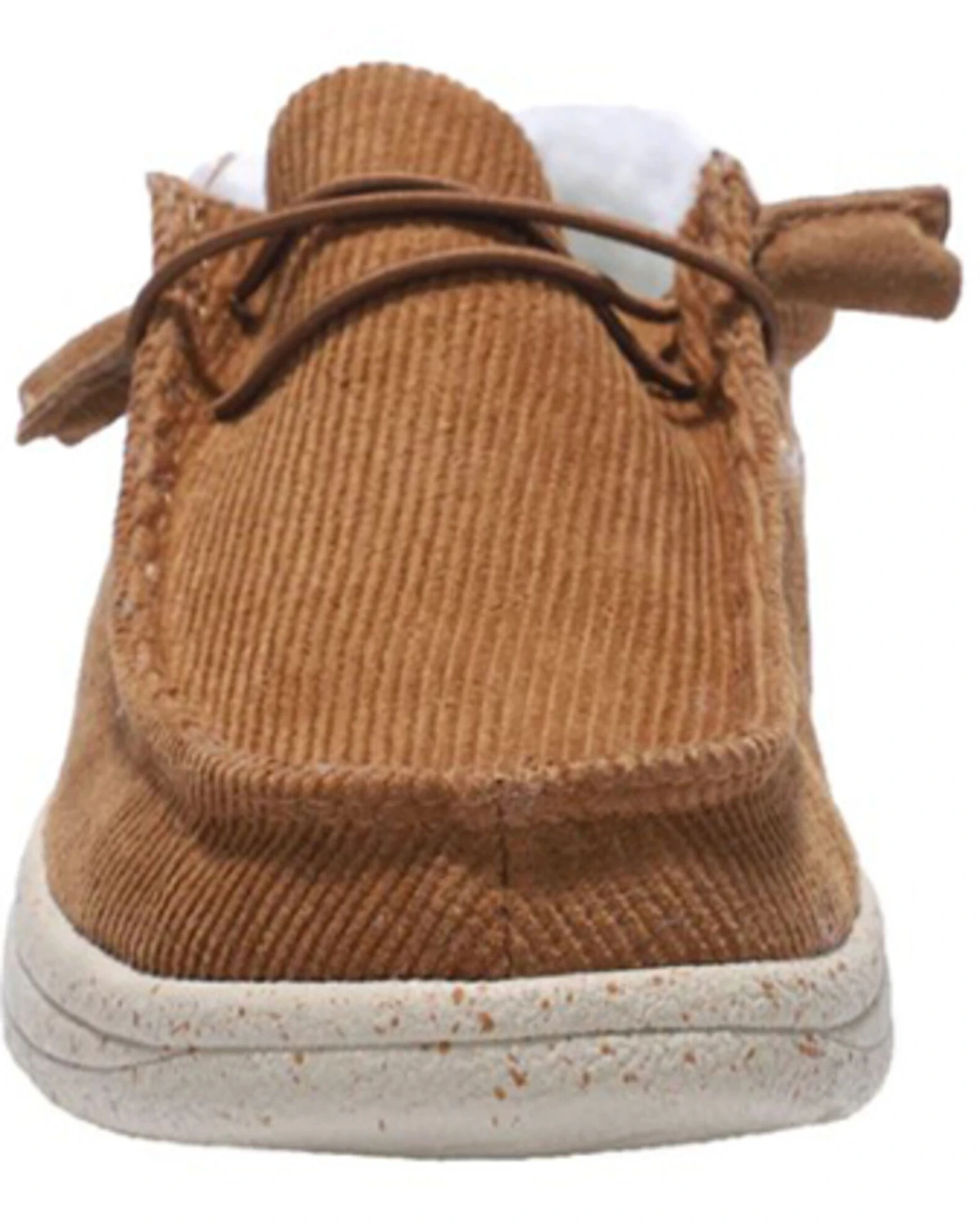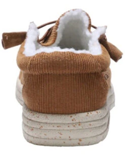 - Solid chestnut brown design with white soles