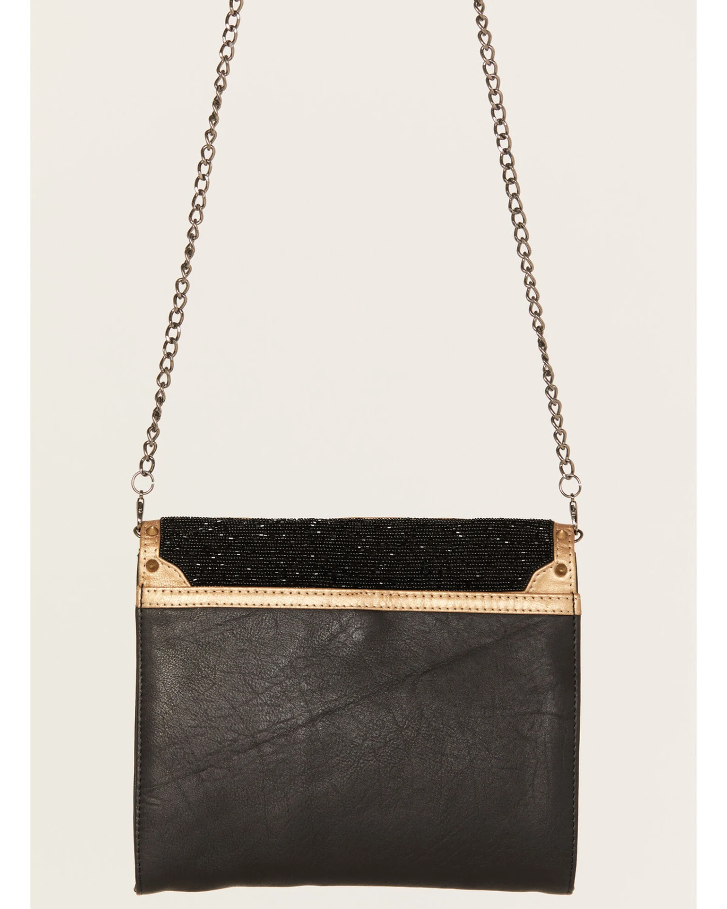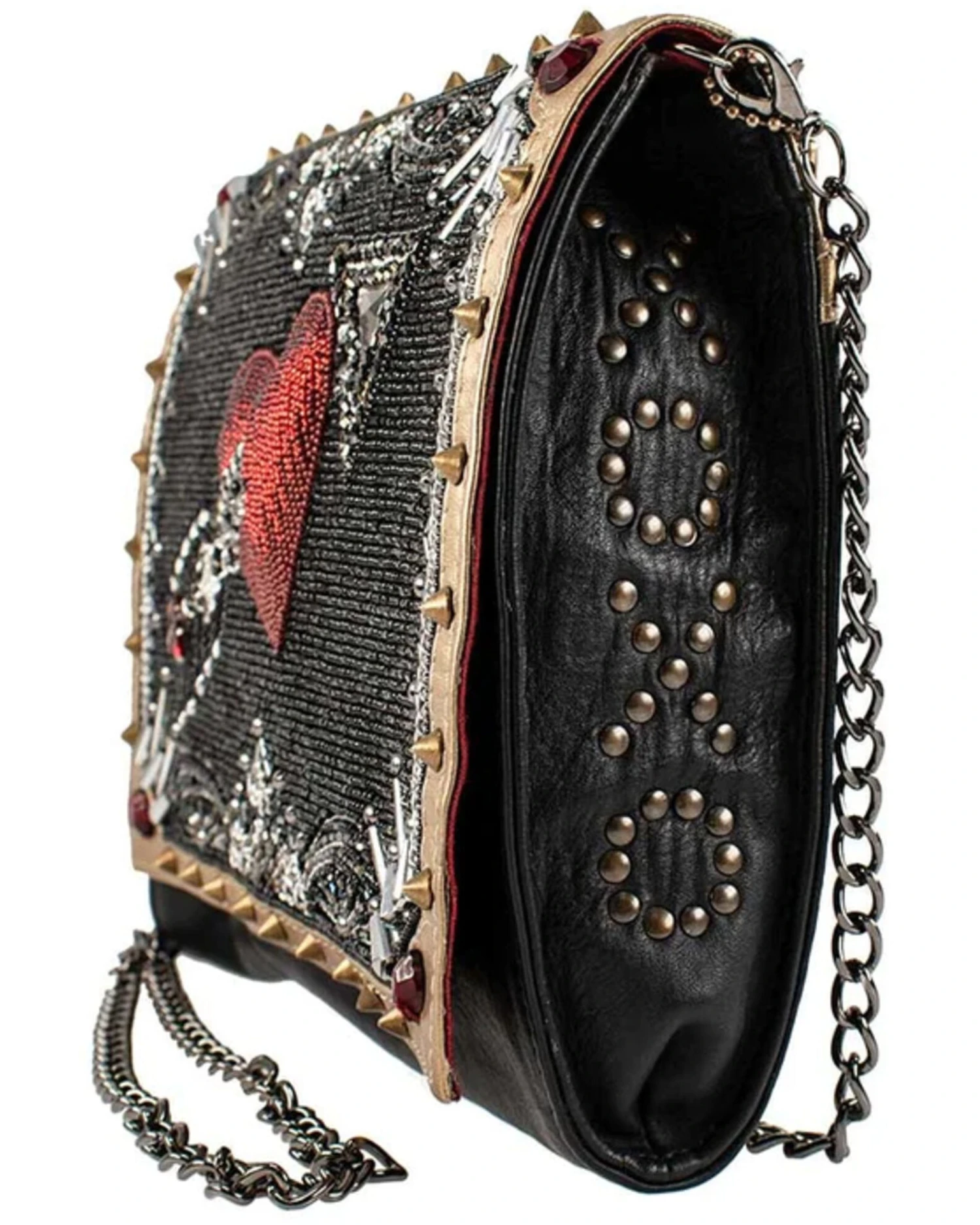 - Black beading, red crystals, bronze studs, gold trim and gold spikes