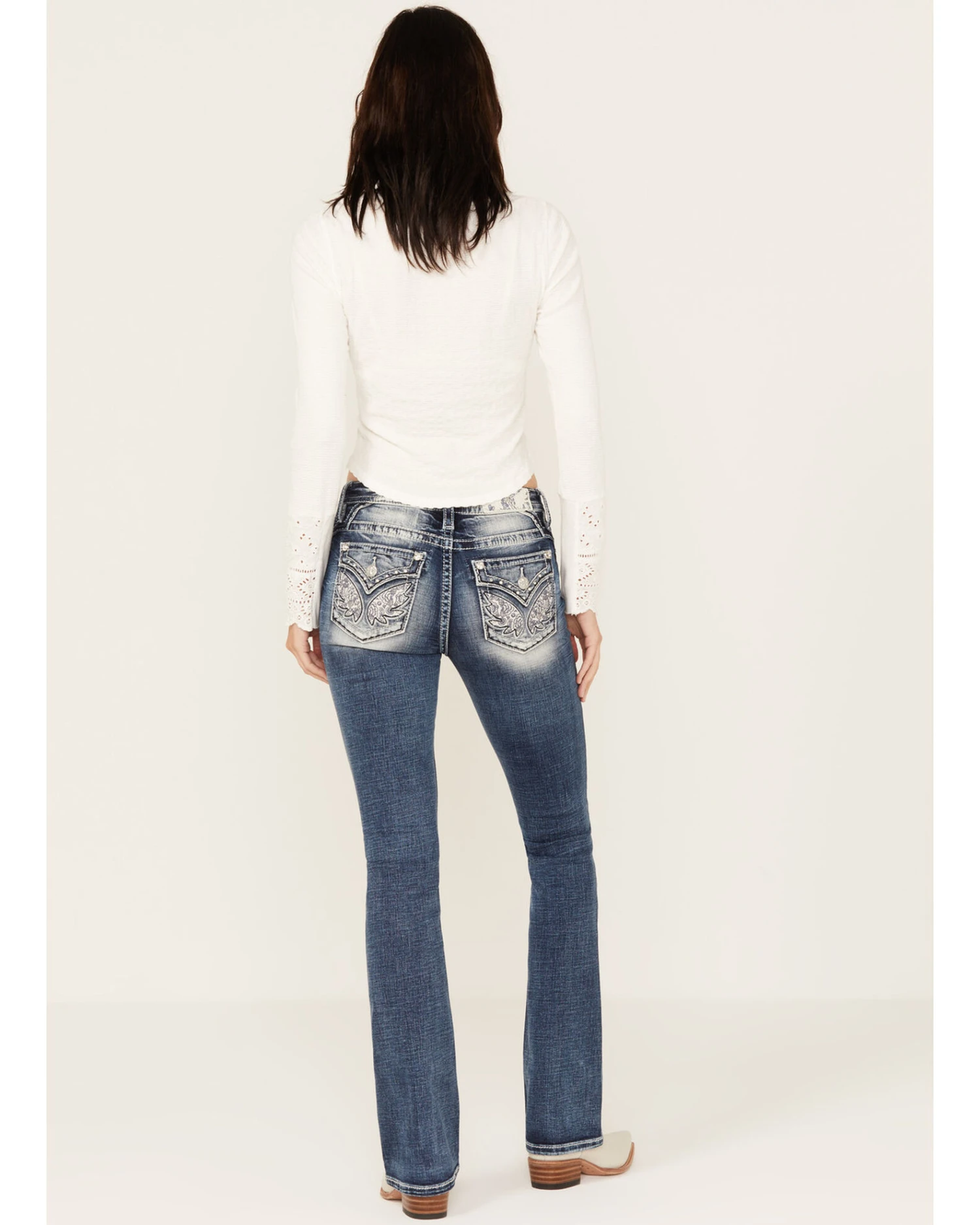 Be the first to review “Miss Me Women’s Dark Wash Mid Rise Floral Paisley Winged Stretch Bootcut Jeans” Cancel reply