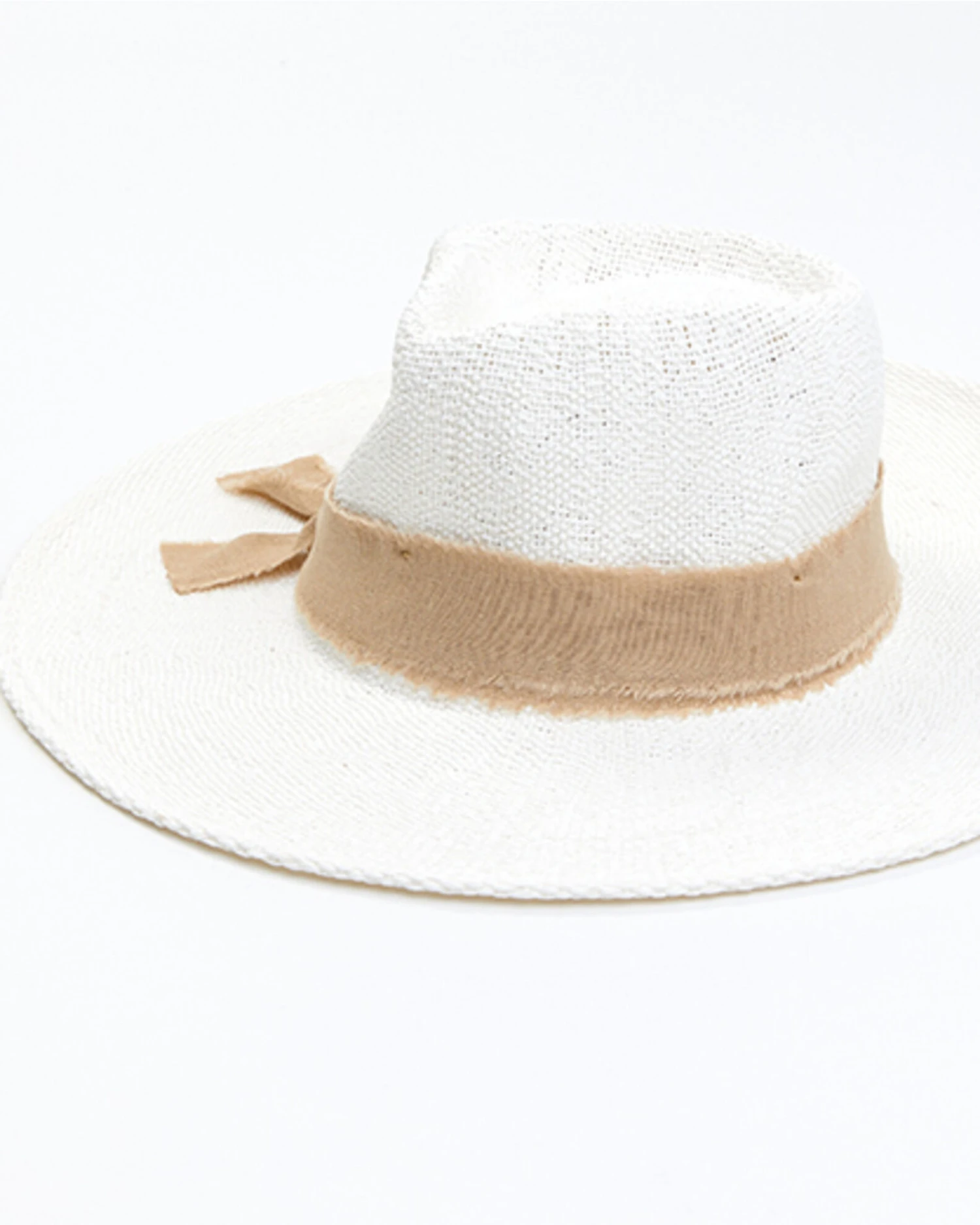 - Distressed linen bow tie outside band