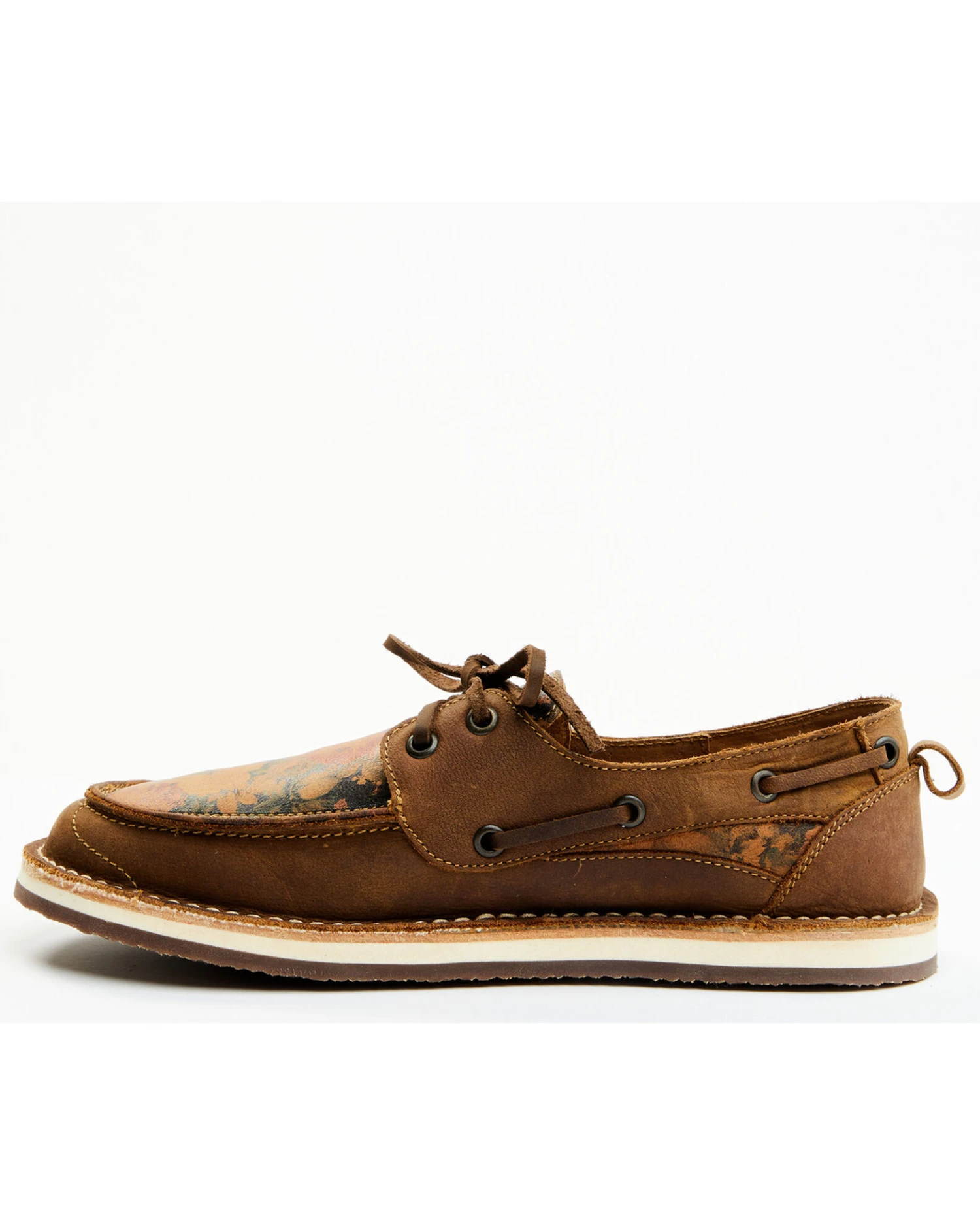 - Floral pattern design on vamp and accented throughout