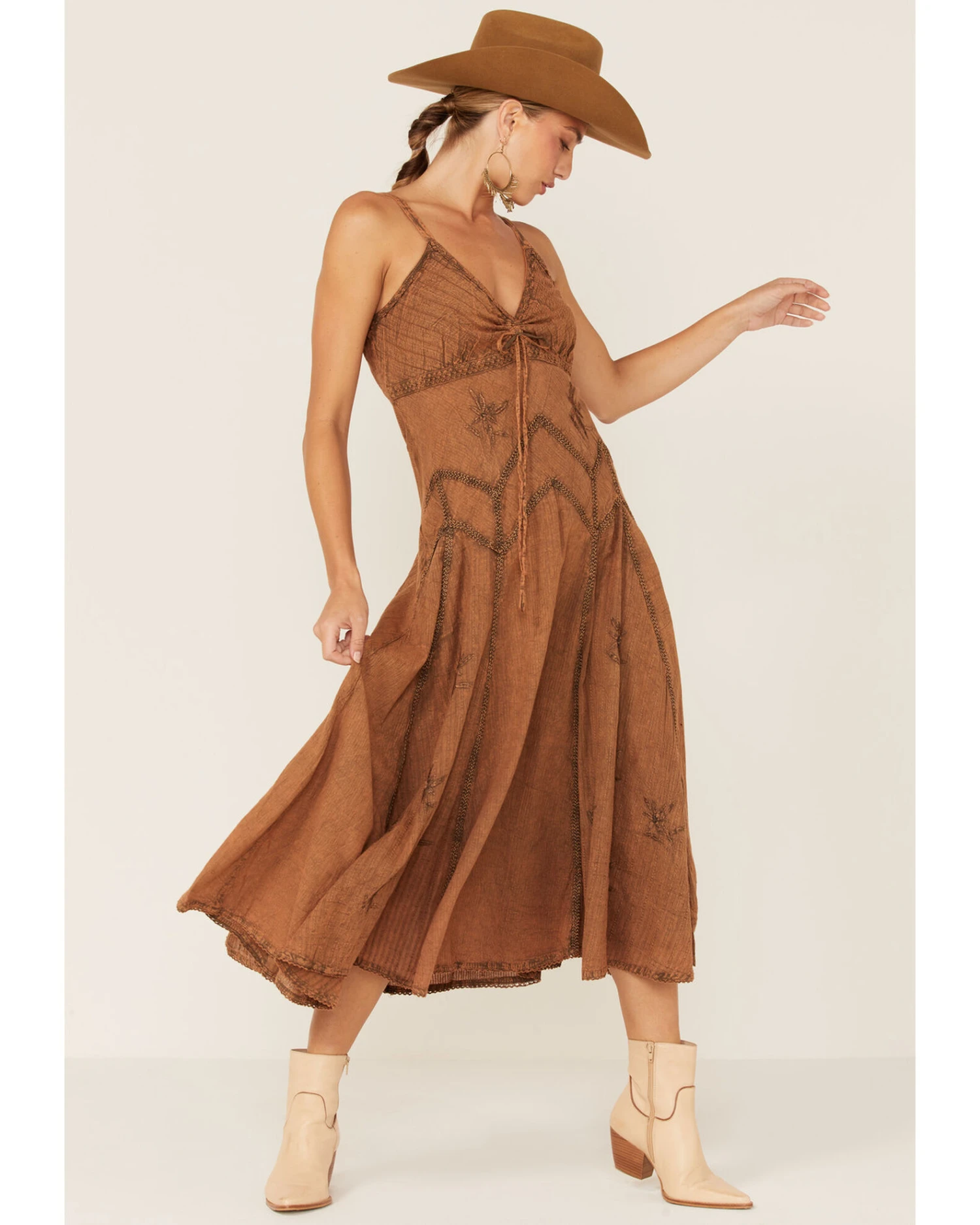 - Floral and braid embroidery design on front