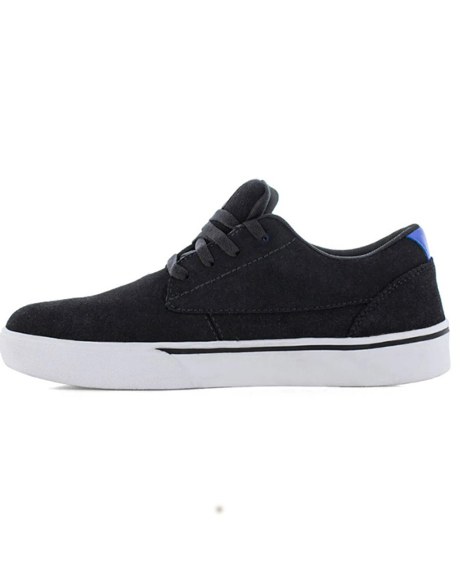 - Black design with white sole and blue details